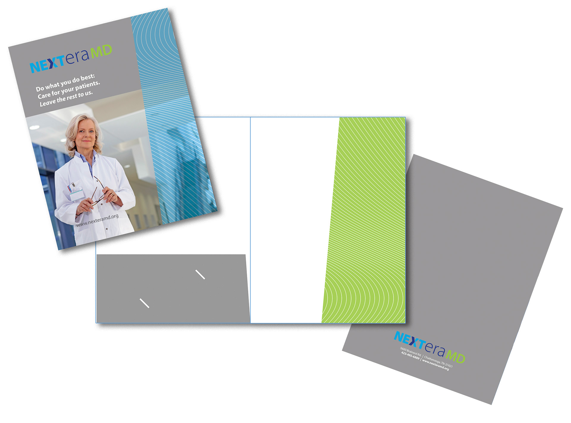 Designed 9x12 folder with standard pocket on the left & innovative pocket on the right. Also designed supporting documents to be placed inside the folder.